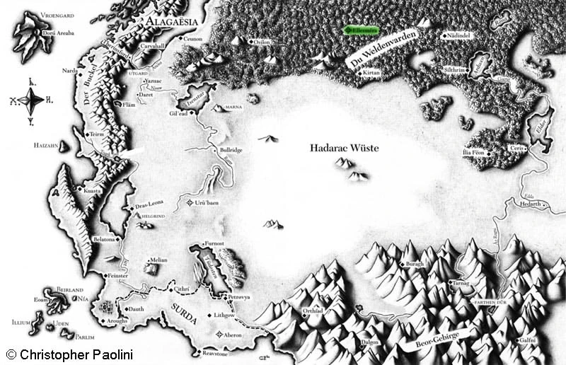 - Die Felsen von Tel'naeír. Wohnsitz von Oromis und Glaedr nach dem Sturz der Drachenreiter und Ausbildungsstelle von Eragon und Saphira.