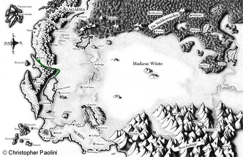 Der Fluss Toark ist im Westen Alagaësias gelegen. Er besteht genau genommen aus zwei Flüssen, die beide im Woadark-See entspringen. Von dort fließt er sowohl in nordwestliche als auch in südöstliche Richtung. Der nordwestliche Arm mündet bei Teirm ins Meer, während der südöstliche in den Leona-See fließt. Der See entwässert in den Jiet, der genaugenommen der gleiche Fluss wie der östliche Toark sein sollte.