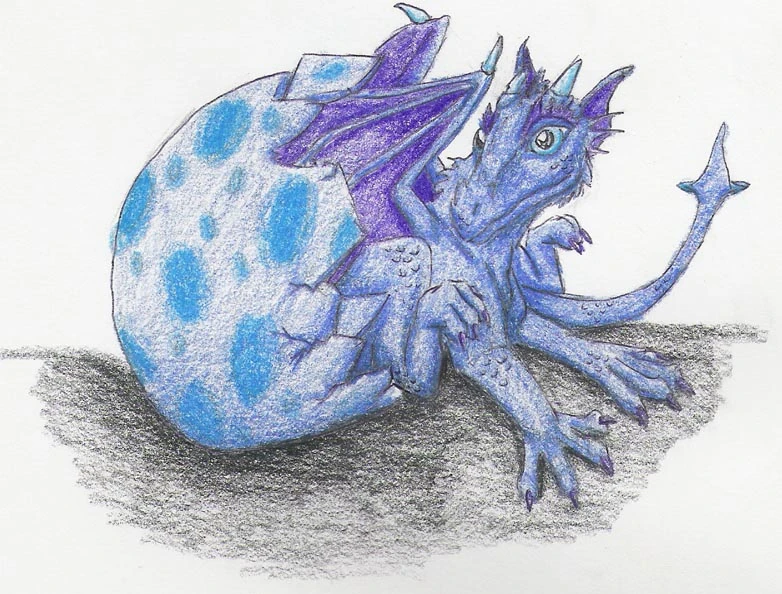 Illustrasjon av Safira når hun klekkes av Holly L. Brouillette
